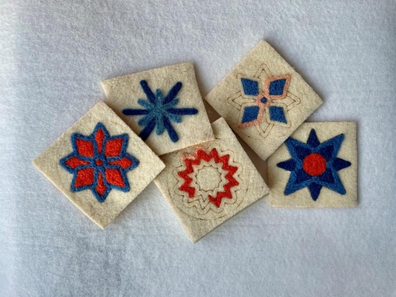 À partir de laine brute et teintée, vous produirez un motif selon le gabarit de votre choix. Puis, vous apprendrez à fixer la laine sur un carré, grâce à la technique de l’aiguilletage.