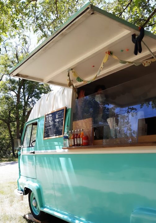 Snacking avec l'Estafette, terrasse ombragée, toilettes et point d'eau sur place.