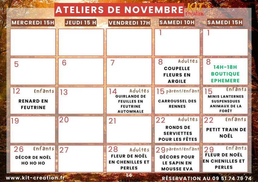 Ateliers de Loisirs Créatifs pour petits et grands à thème autour du DIY. Réservation par téléphone ou à la boutique. 18 euros enfant, 20 euros adultes et duo parent/enfant 28€