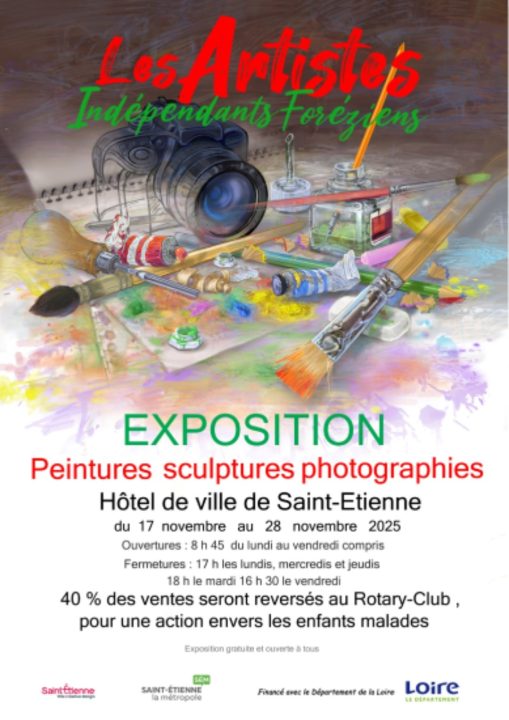 Les artistes Indépendants Foréziens associent leur exposition à l'Hôtel de Ville de Saint-Etienne à l'action du Rotary Club :