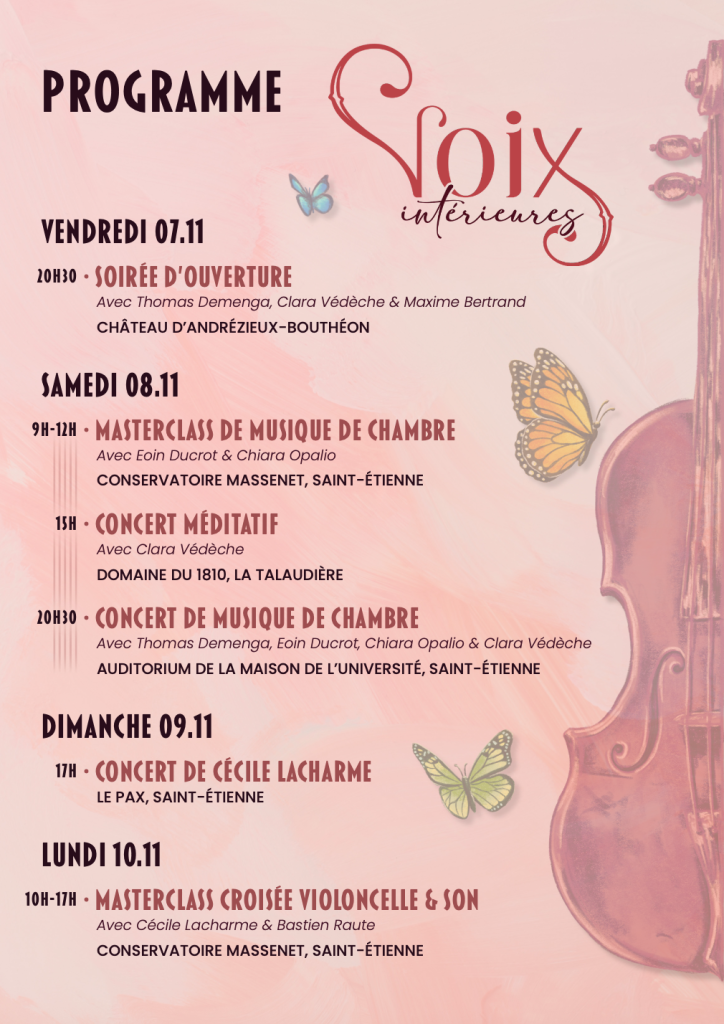 Divers lieux : Domaine Le 1810 à La Talaudière, Château d'Andrézieux-Bouthéon, Le Pax, Conservatoire Massenet, Maison de l'Université Jean Monnet.