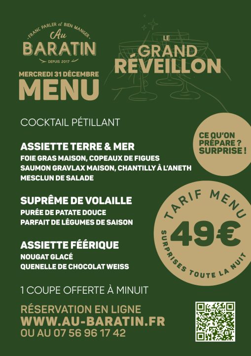 Un menu préparé maison, une coupe offerte à minuit et surtout : des surprises toute la nuit !