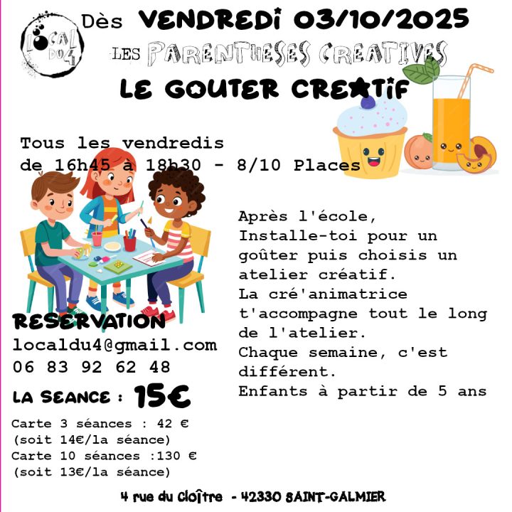 "Après l'école, installe toi pour un goûter puis choisis un atelier créatif.