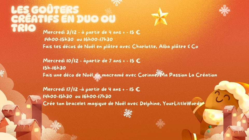 Compose un duo ou un trio : ami-e/ami-e, Soeur/ frère mère/père, grand-mère/père, tante/Oncle et installe-toi à une table et la Cré'Animatrice va vous accompagner pour un moment de création partagé et gourmand !