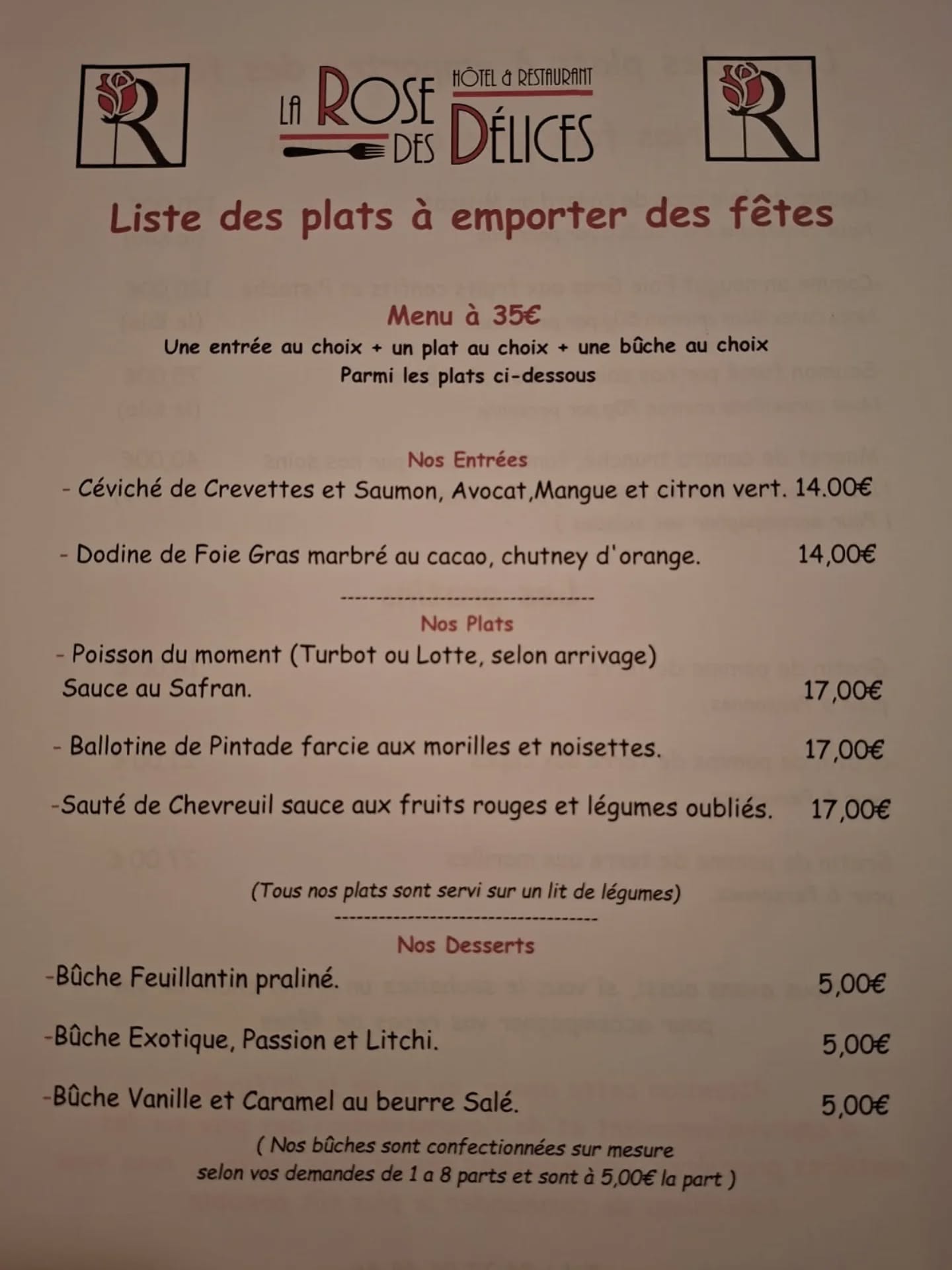 Menu de fêtes à emporter au restaurant La Rose des Délices