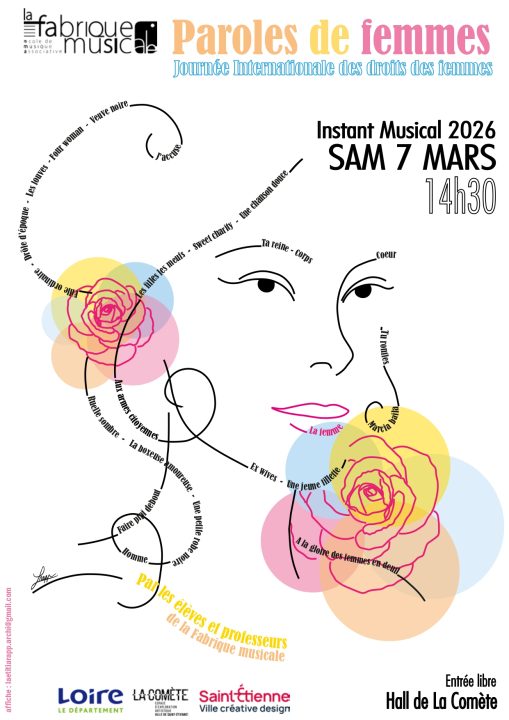 Dans le cadre de la journée internationale des droits des femmes du 8 mars, nous proposons un instant musical autour d'un répertoire concernant les femmes par les élèves et professeurs de La Fabrique Musicale.