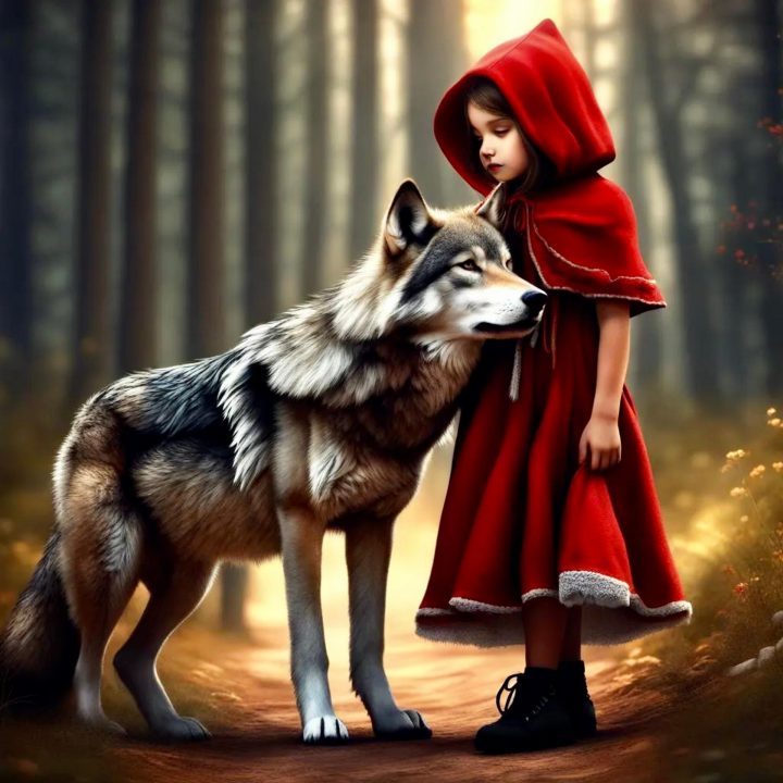 Les contes de Perrault revus et corrigés : le grand méchnat loup est malheureux car il est incompris et personne ne l'aime, jusqu'au coup de théâtre final..