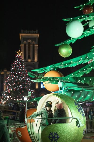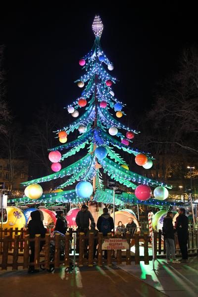 À bord de l’une de ses 8 boules multicolores, le sapin merveilleux entraîne les enfants pour un voyage lumineux et aérien au son des grands classiques de Noël.