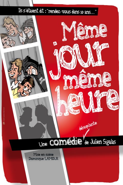 Manu, Etienne et JB viennent d’avoir leur bac. Les trois copains sont partagés. D’un coté, le bonheur d’en avoir fini avec le lycée. De l’autre, la nostalgie de se séparer pour leurs études respectives. Ils scellent alors un pacte : Se donner rendez vous dans dix ans, ” Même jour, Même heure “, comme dans la célèbre chanson. D’ici là, ils ne se donneront plus de nouvelles. Le jour arrive et eux aussi. Mais entre temps, ils ont beaucoup changé…