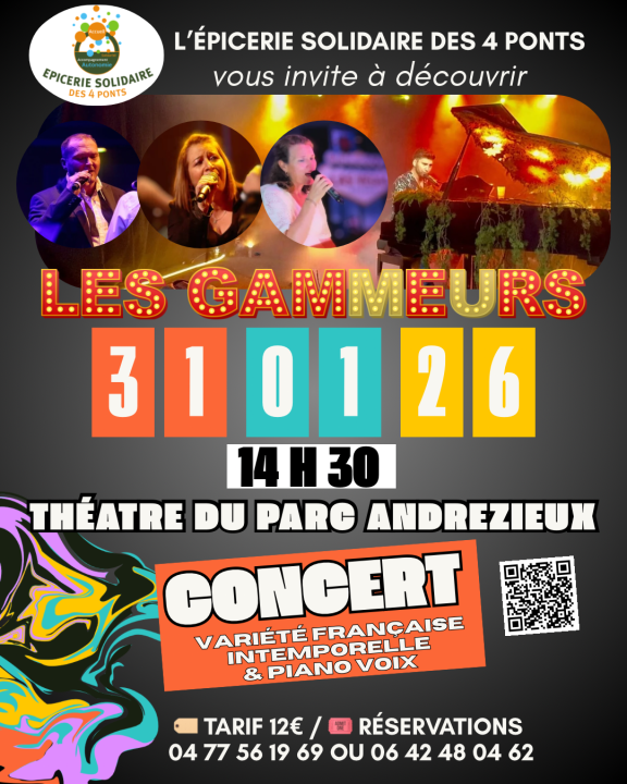 Comme chaque année, l’épicerie solidaire des 4 ponts organise un spectacle musical au théâtre du Parc à Andrézieux-Bouthéon le samedi 31 janvier 2026 à 14h30.