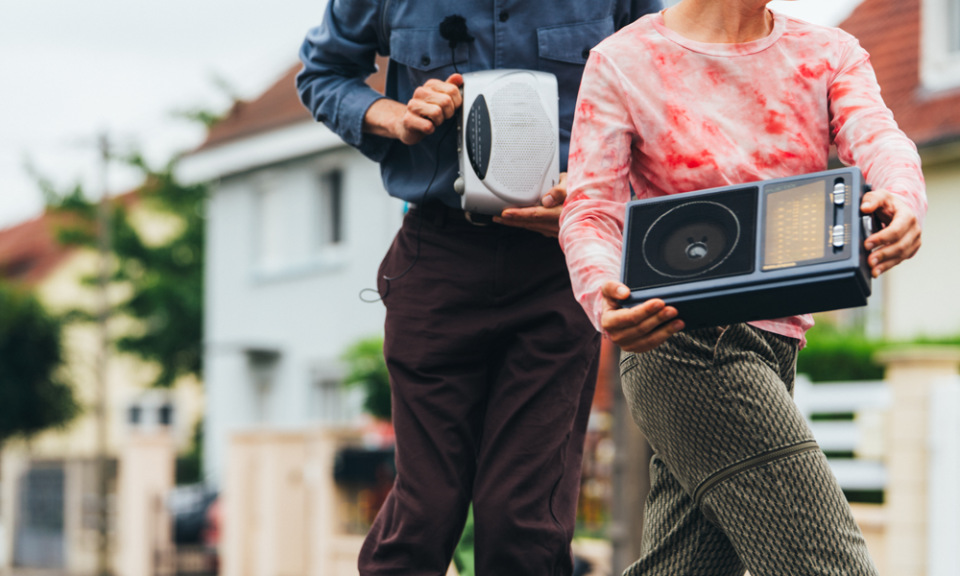 La danse dialogue avec un texte poétique et des sons de radios, échos du monde extérieur et de ses rythmes. Ces éléments accompagnent une réflexion sur la relation sociale et la place du corps dans nos vies quotidiennes.