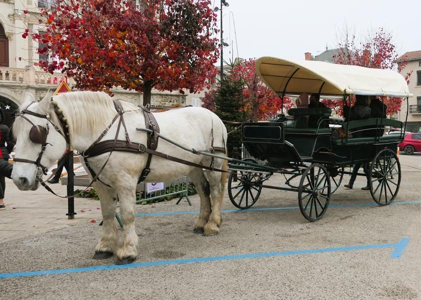 Montez à bord de la Calèche de Noël pour une petite balade dans le Centre ville de Saint-Galmier !
