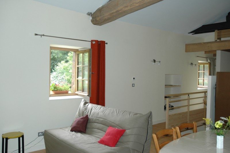 Grange du 17ème siècle, entièrement restaurée. Comprend un rez de chaussée avec cabinet toilette, buanderie, petite chambre avec 2 lits superposés. Étage avec cuisine, séjour (canapé convertible), chambre, salle d'eau, WC indépendant, chauffage électrique au sol