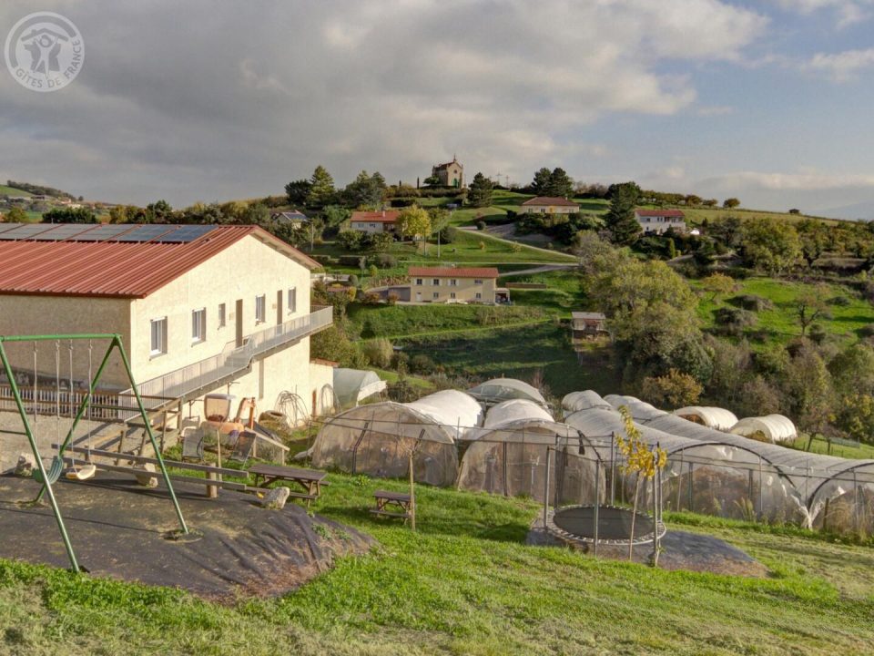 Le gîte est situé dans un bâtiment agricole chez un arboriculteur (dont Thierry représente la 3ème génération), il dispose d'un accès indépendant, d'un parking et d'un terrain privatif. Grand séjour de 45 m² avec une pièce à vivre comprenant salon, cuisine ouverte, deux chambres, un wc indépendant et une salle d'eau. Toutes les ouvertures sont orientées à l'ouest, au soleil couchant, sans vis-à-vis. Chauffage électrique compris dans la location. A l’extérieur, un espace repas, un terrain de boules et des jeux pour les enfants. (Pour les sociétés, la caution est de 800 €). Vous allez adorer vivre en pleine campagne, en surplomb des serres et des vergers, avec une vue superbe sur la campagne alentour, le bourg du village et le Parc Naturel du Pilat. Environnement idéal pour le VTT, les balades, la randonnée. Commerces au village facilement accessibles à pied, et le village de St-Romain est à 10 km de l'autoroute Lyon/St-Etienne, donc idéalement situé, que vous soyez en séjour pour des vacances ou pour motif professionnel. En 2023, année d'ouverture, votre espace extérieur est composé d'un terrain commun avec l'autre gîte, avec pour chaque locataire table, bains de soleil, parasol et barbecue. Vous avez aussi accès à un grand pré pour profiter à fond de l'orientation plein sud, avec un maximum d'ensoleillement. Le zoo de St-Martin la Plaine est à 3 km de la maison. .