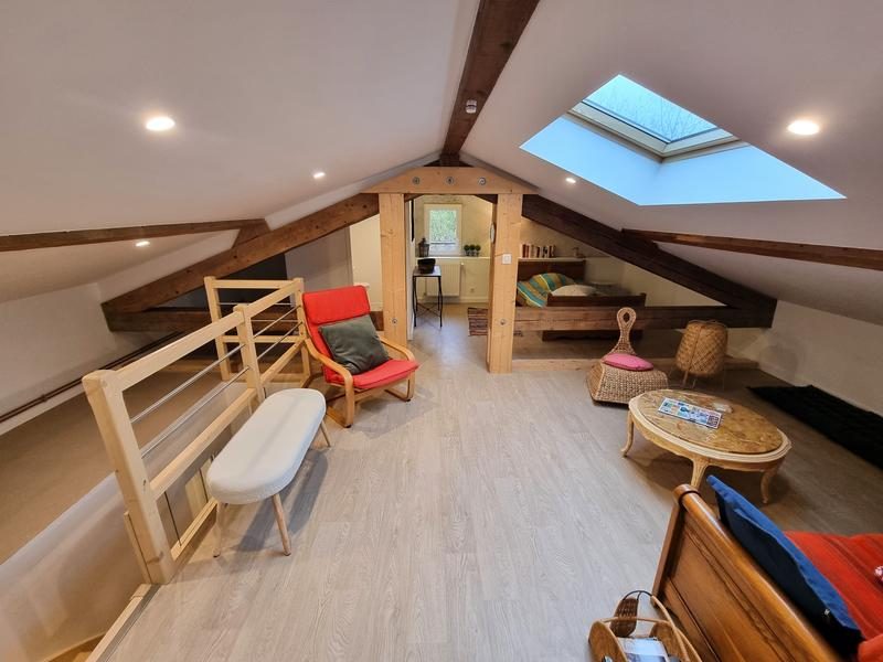 → Espace nuit ouvert sur le coin détente : 1 lit 1 pers. en 120 cm x 190 cm