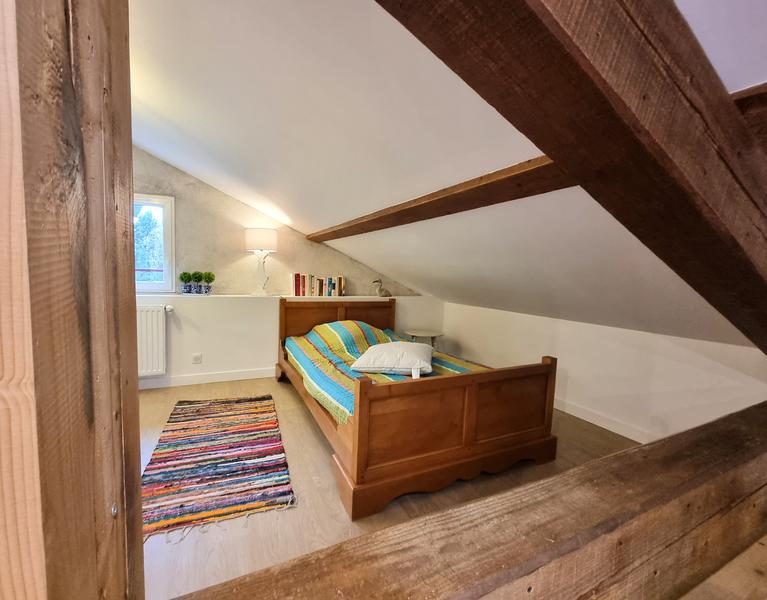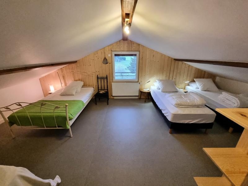 → Chambre mansardée : 1 lit 1 pers. en 120 cm x 190 cm + 2 lits 1 pers en 90 cm x 200 cm