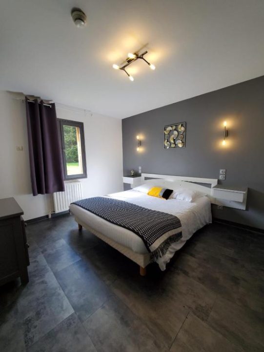 Leur style décoratif moderne, chaleureux et épuré crée une ambiance douce et confortable, où chaque détail est pensé pour le bien-être de nos hôtes. Chaque chambre dispose d'une vue sur le parc de cèdres, garantissant intimité et sérénité.
