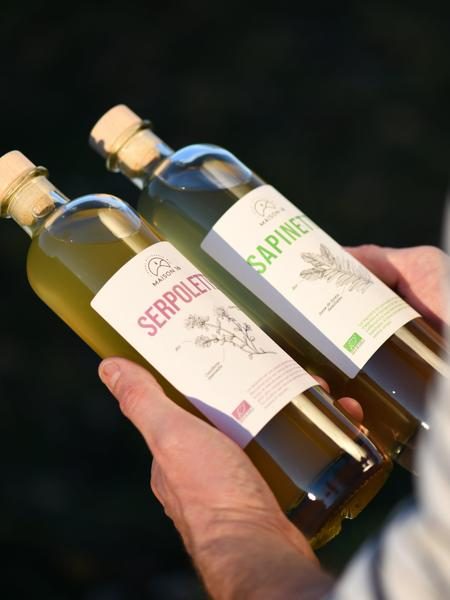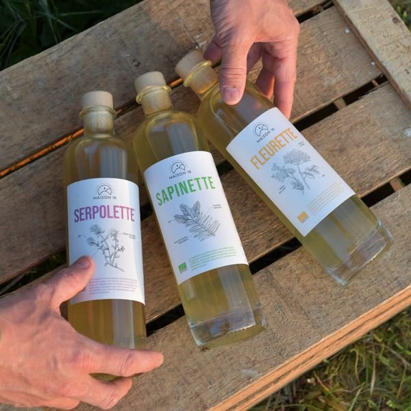 100% biologischer Likör aus dem Forez auf der Grundlage von Wildkräutern. Ein Sapinette-Likör mitTannennadeln und -knospen und ein Serpolette-Likör mit wildem Thymian und Serpolet. Kosten Sie ihn pur oder im Cocktail!