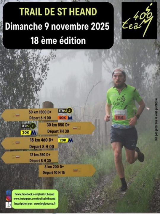 La 18ème édition du trail de Saint-Héand aura lieu cette année le dimanche 9 novembre 2025 au départ de la salle Condelouse. C'est la course, la date, le terrain, et les parcours idéaux pour préparer la SaintéLyon !