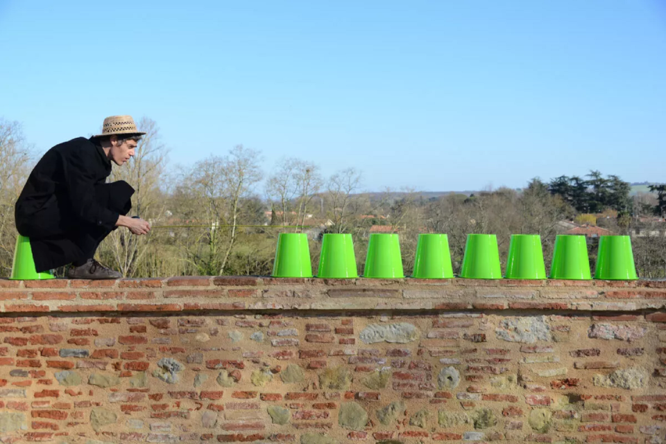 Dans ce spectacle muet, un personnage téméraire multiplie les constructions géométriques à travers la manipulation de seaux. Obstiné face à l’impossible, ce doux rêveur nous offre une vision ludique et absurde de son obsession.