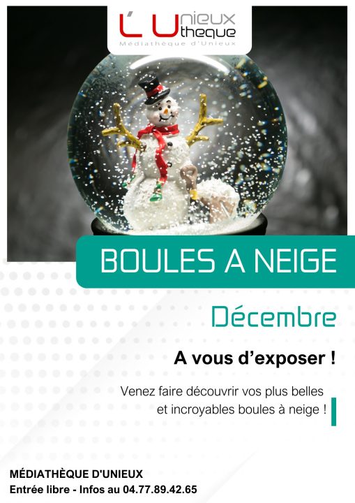 Exposition de boules à neige organisée par la médiathèque d’Unieux, qui sera composée des pièces apportées par les visiteurs.