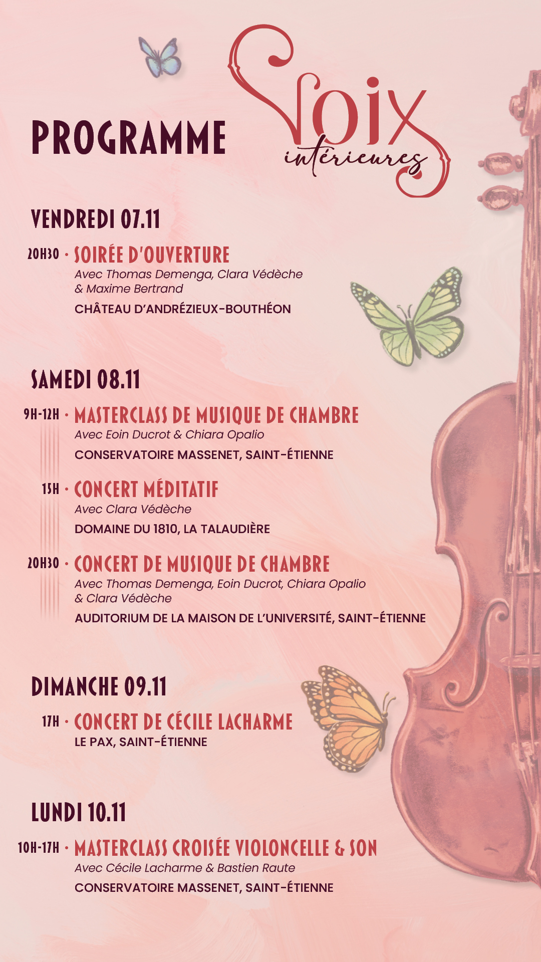 Venez assister à des concerts de musique de chambre, méditatifs, et des masterclass – donnés par des artistes venus du monde entier.