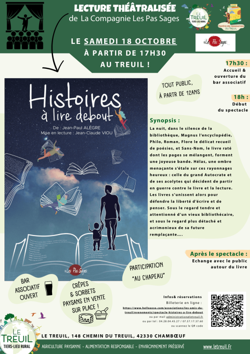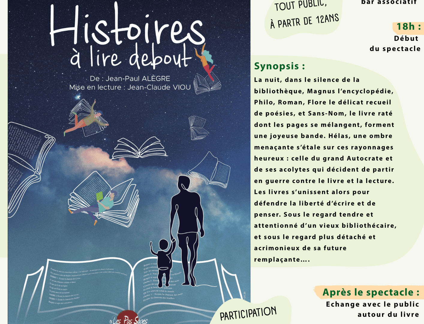Les Amis du Treuil organisent la soirée spectacle : « Histoires à lire debout » par la compagnie Les Pas Sages.
