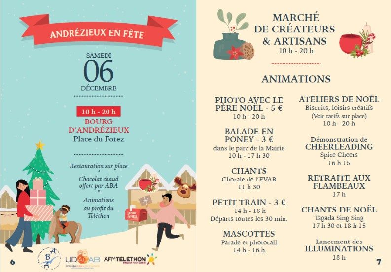 La magie des fêtes de fin d’année s’empare de la place du Forez avec un marché de Noël (artisans et créateurs) accompagné de nombreuses animations : photo avec le père Noël, parades, et chants. A 18 h, c’est l’heure du lancement des illuminations.