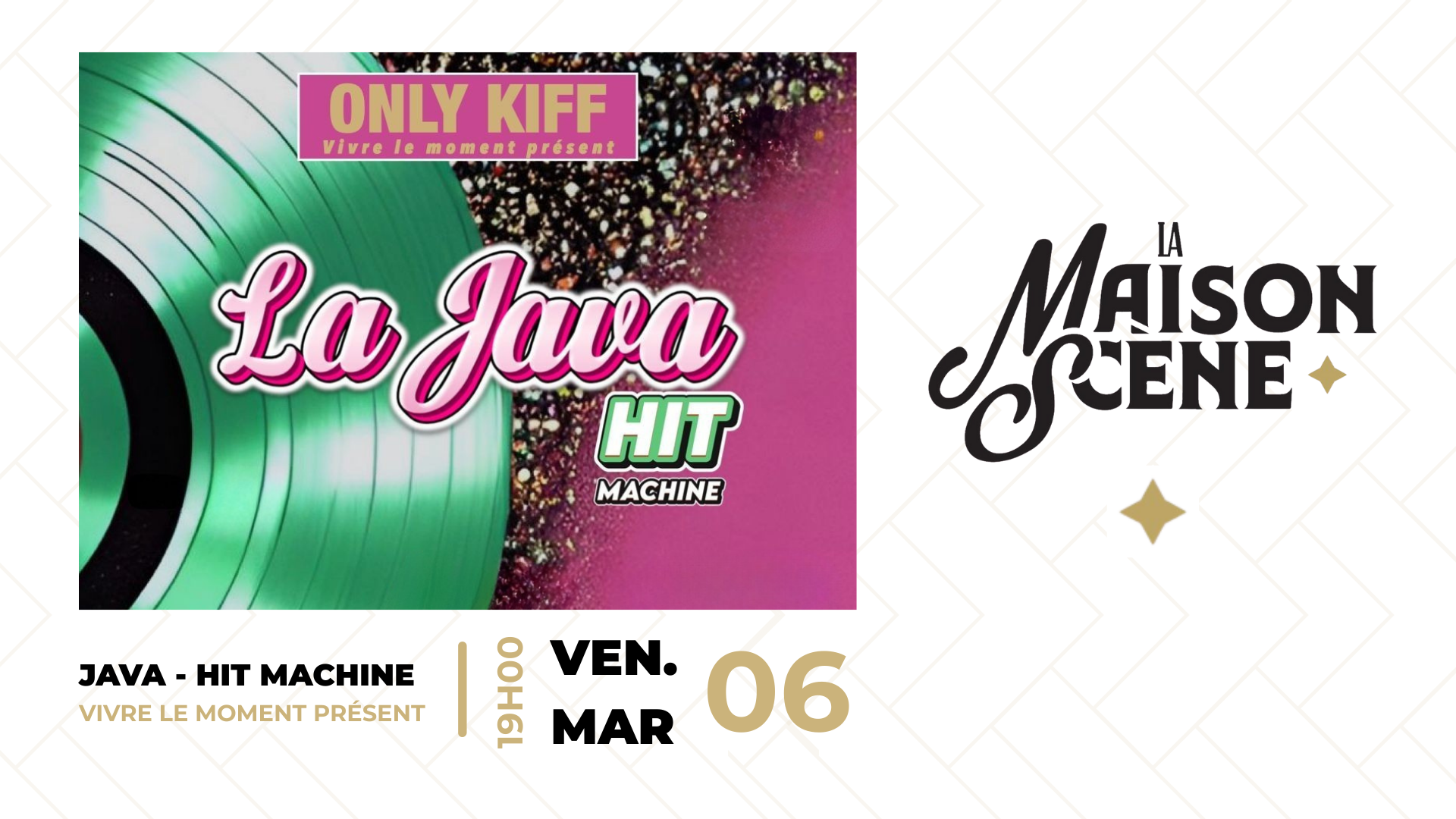Vous avez aimé la JAVA Revival ? Vous allez adorer la JAVA Hit Machine ! Afterwork festif avec hits cultes, blind test, planches à partager et ambiance haute en couleurs à La Maison Scène. Son, food et good vibes garantis !