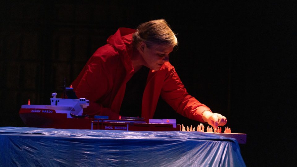 La metteuse en scène s’empare d’un sujet brûlant d’actualité : celui des personnes secourues en mer Méditerranée par le navire humanitaire SOS Méditerranée. À partir de témoignages de rescapés de l’Océan Viking, elle imagine un récit sensible et poétique sur les parcours d’exil.