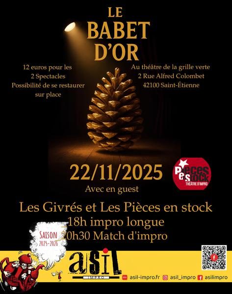 On vous donne rendez-vous pour le babet d'or un spectacle d’improvisation qui réunit 3 troupes de théâtre : les pièces en stock, les givrés et l'Asil.