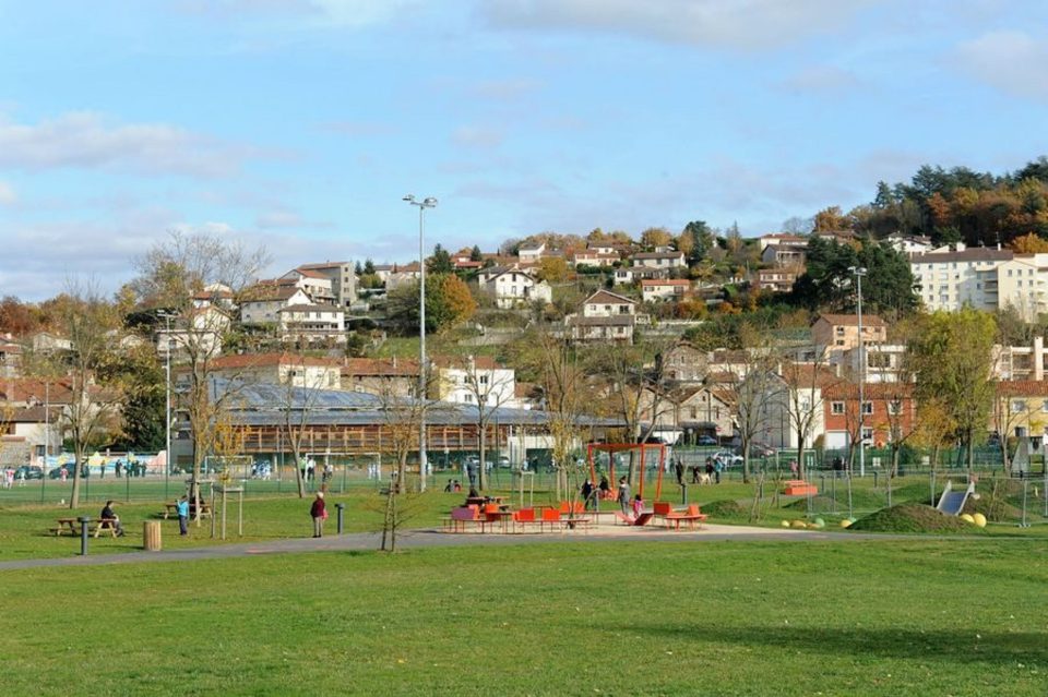 Un parc qui tape dans l’œil ! Le mobilier, les jeux, la signalétique ont été dessinés spécialement pour cet espace et participent à son identité cohérente, notamment par le choix de la couleur vermillon.